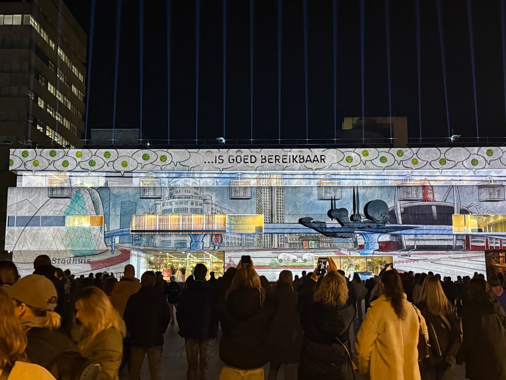 Cool visuals projected directly on the town hall of the city. It was definitely the most impressive installation this year, combining light and sound!