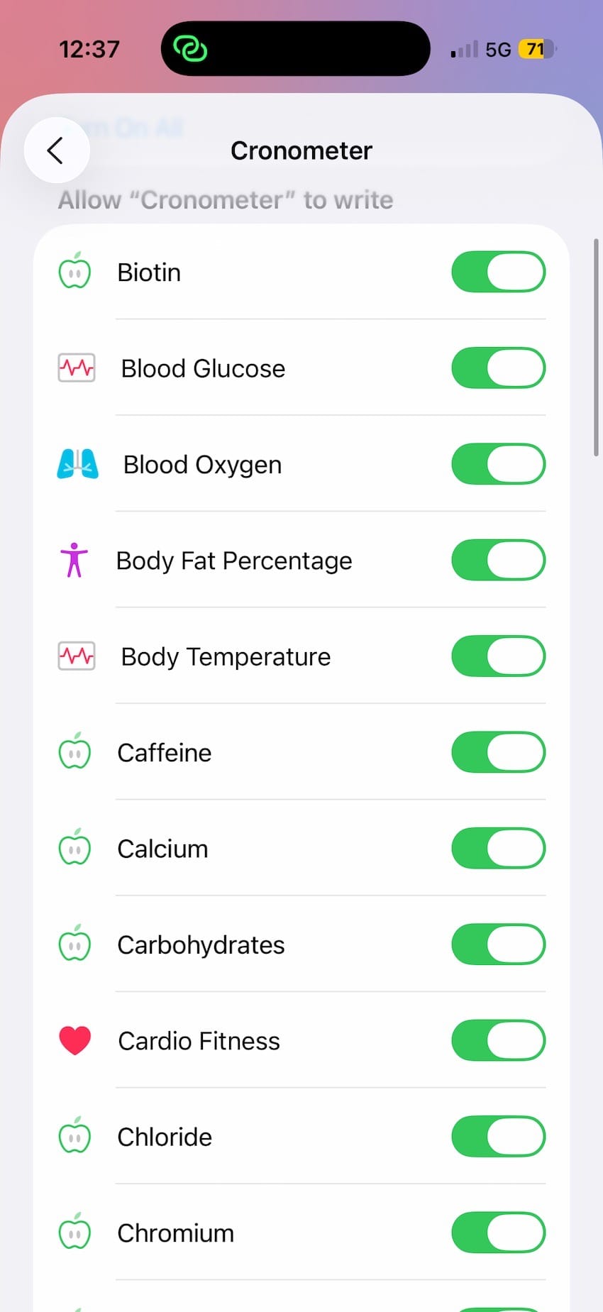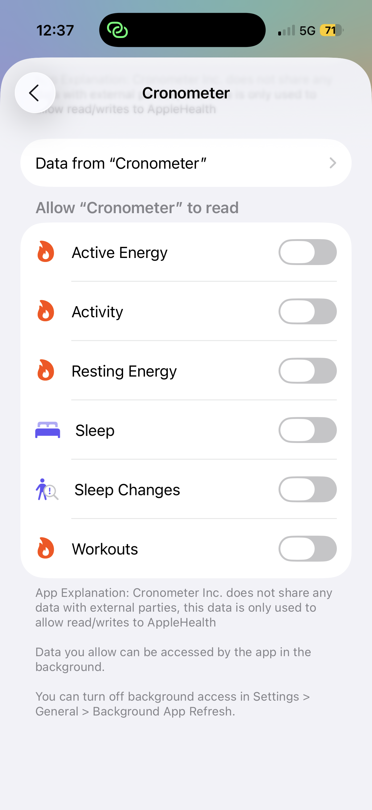You can control the “write” and “read” permissions of third-party apps that handle your data, as demonstrated here by the permissions I granted to the Cronometer app when it interacts with Apple Health.